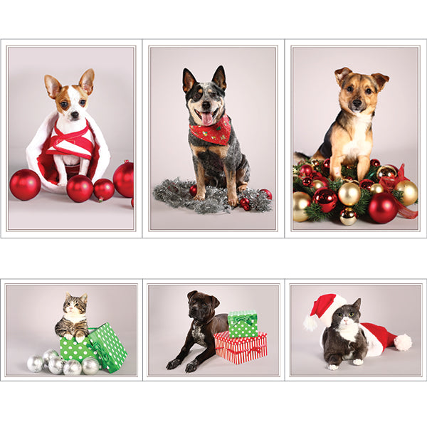 Pack of 12 Christmas Cards with matching envelopes, featuring 6 dogs and 6 cats.